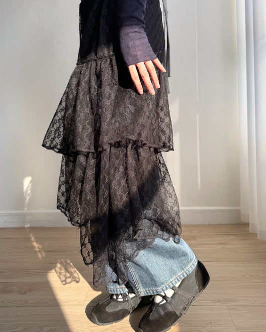 SK207 格子鈕扣2WAY裙子 - Brown | Black