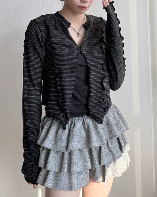 SK208 蛋糕小短裙褲 - Ivory | Grey