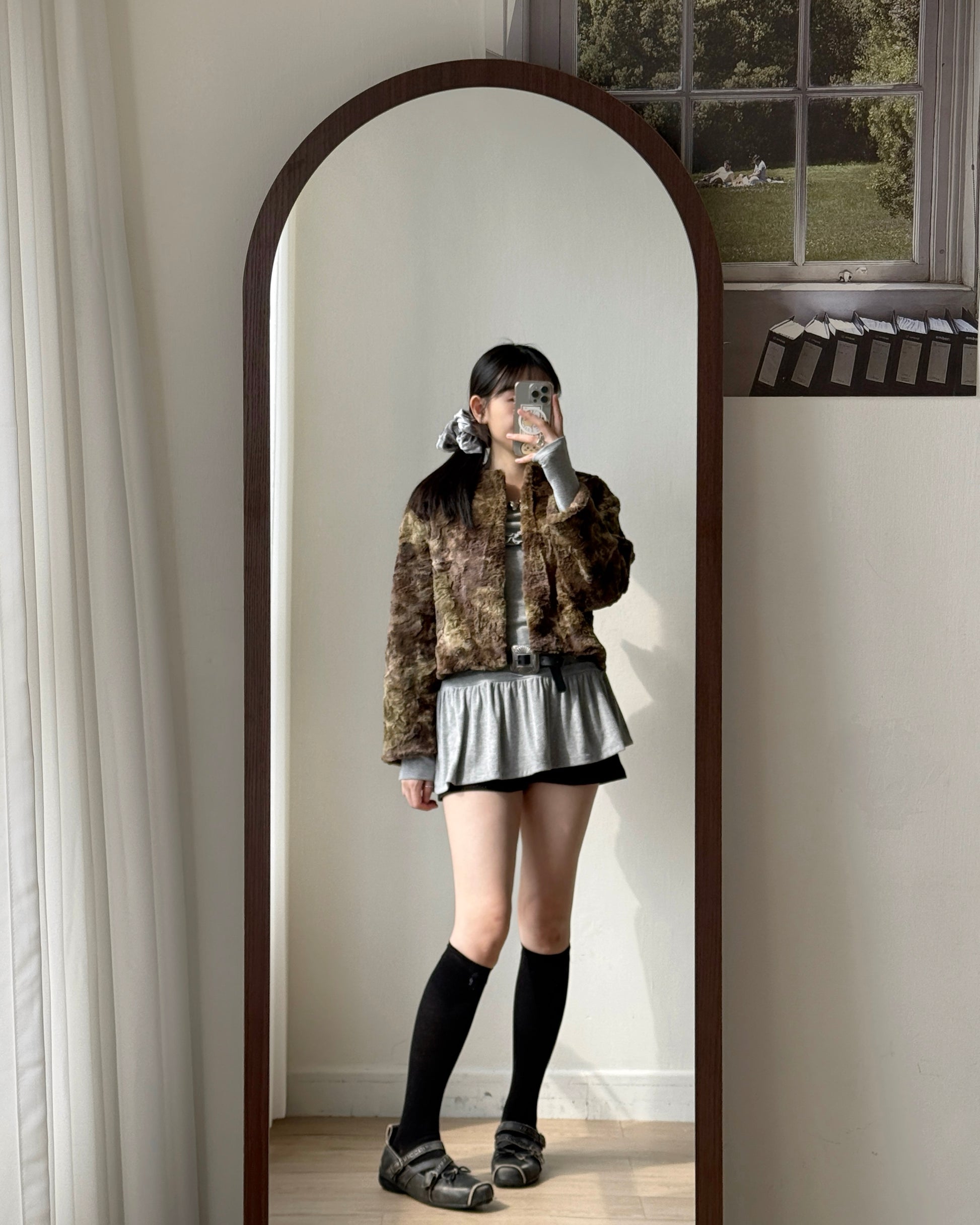 JK044 Mixed Fur Jacket - Khaki | Gray