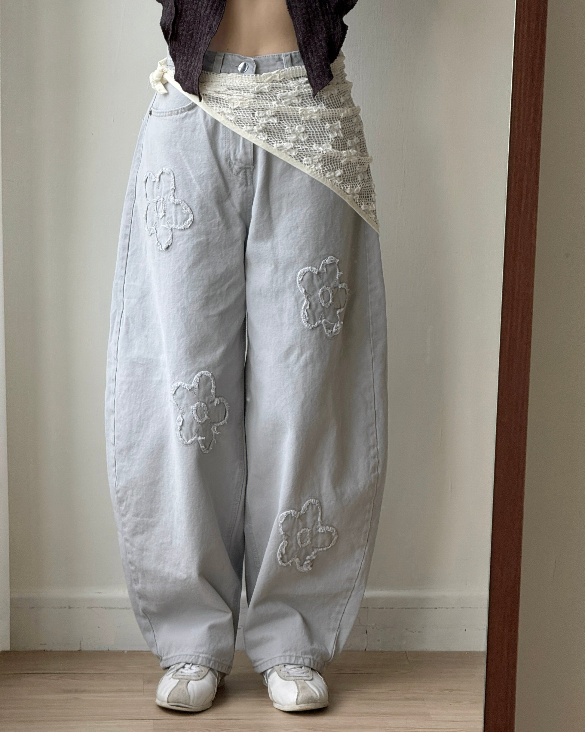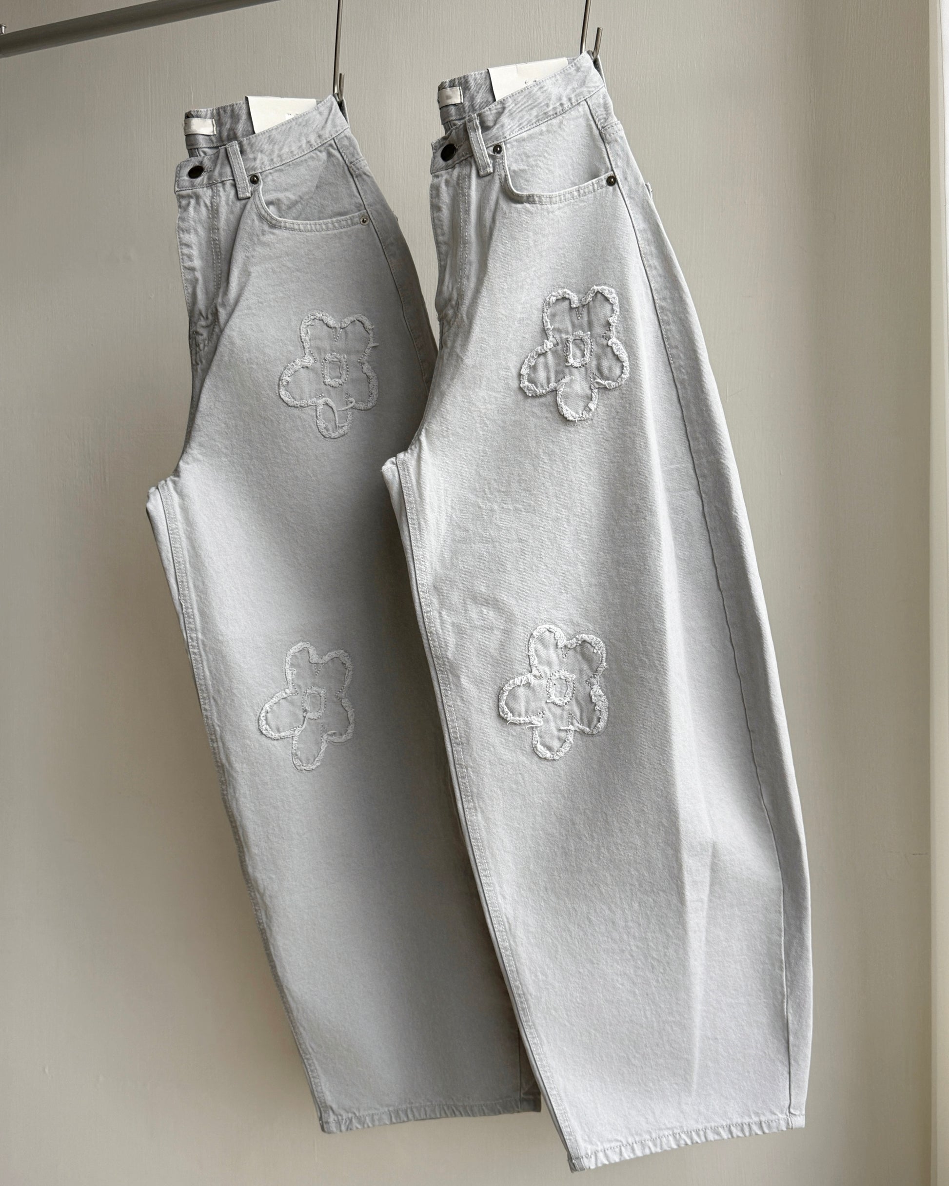 🩵牛仔褲限定優惠 JN061 Floral Jeans - Gray