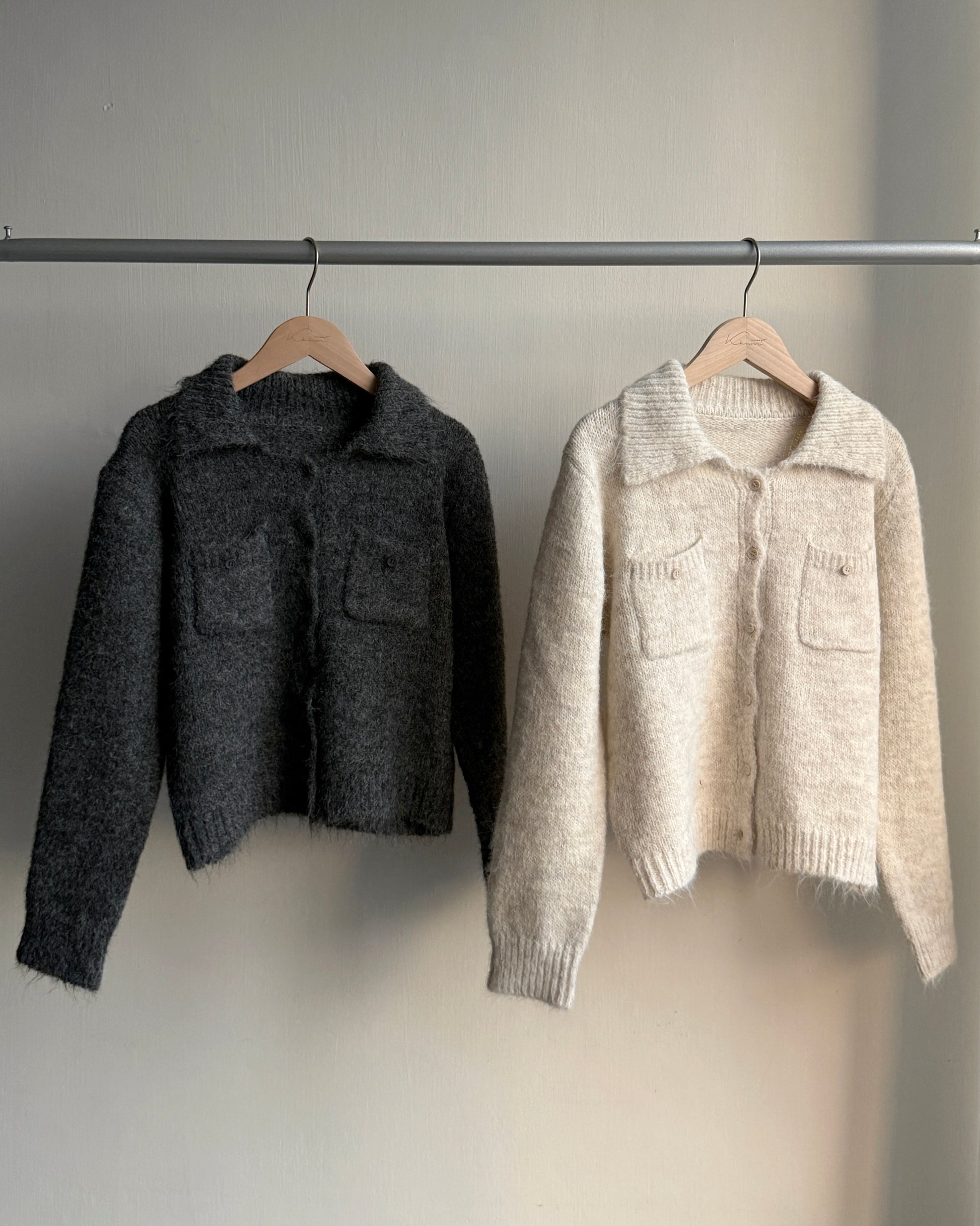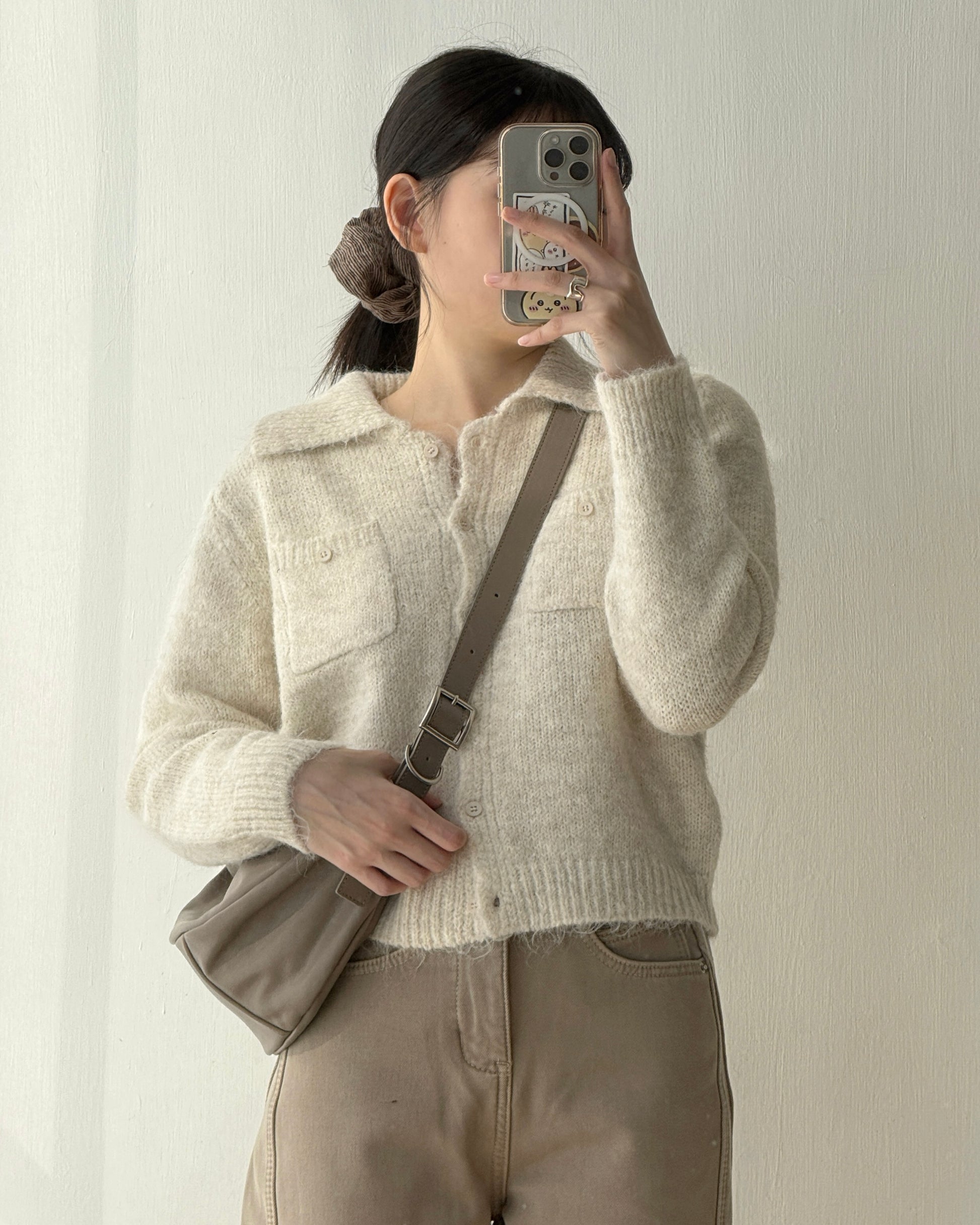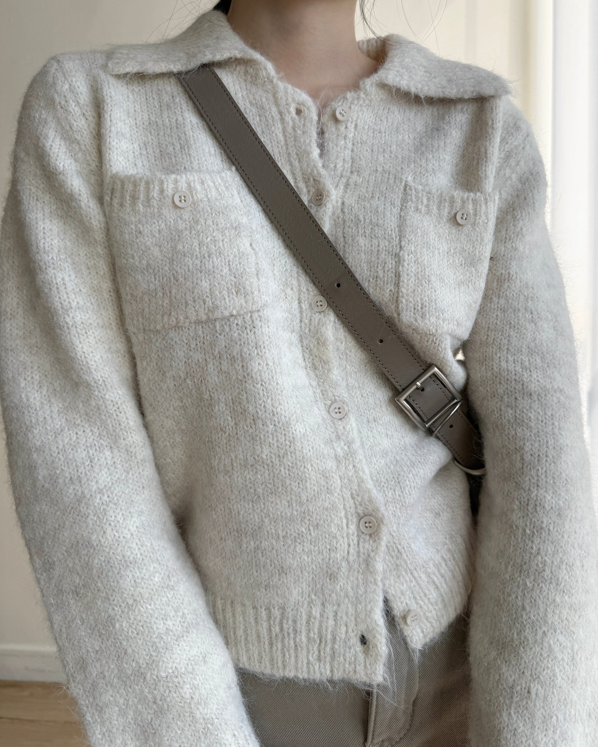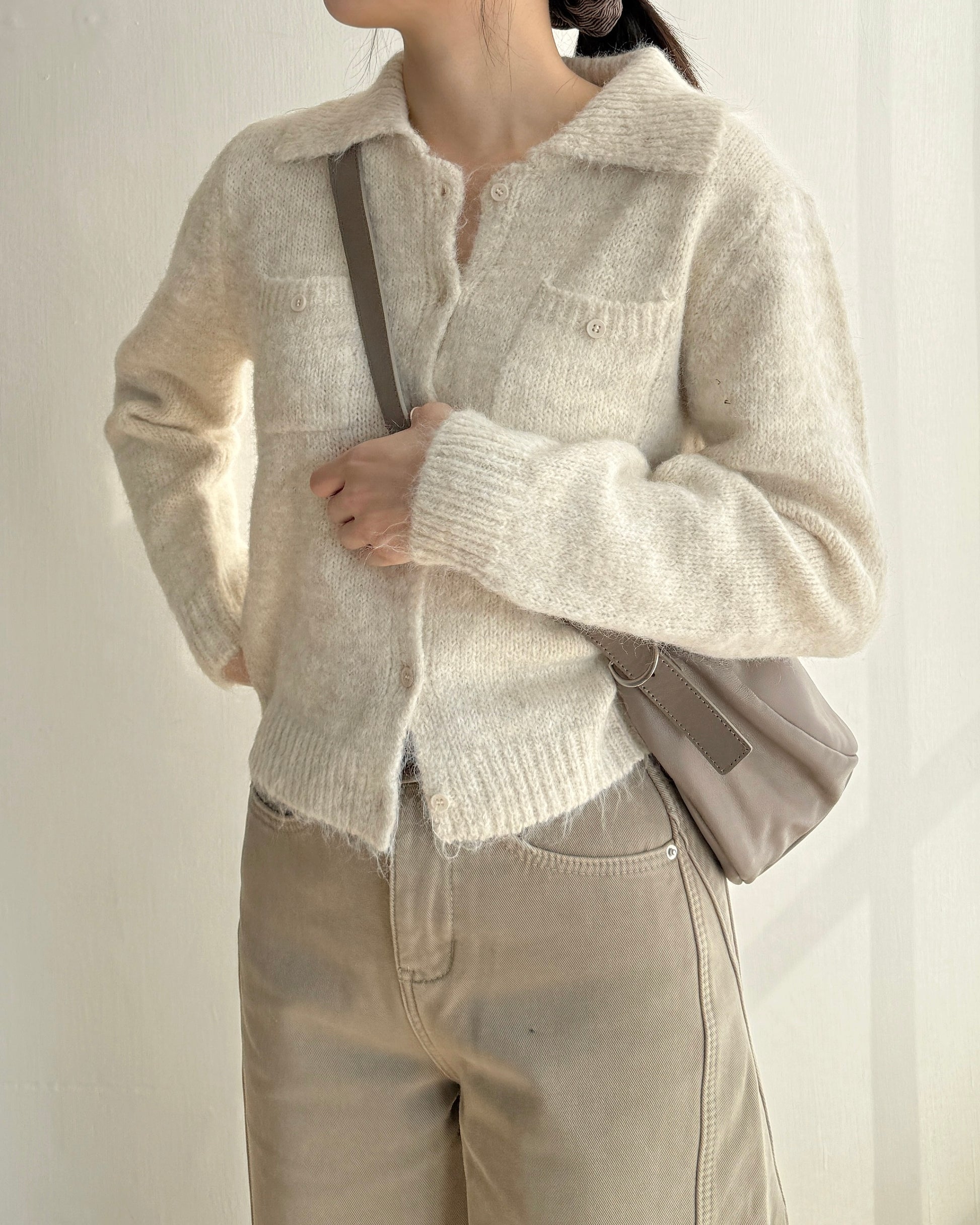 TP561 修身口袋針織上衣 - Ivory | Charcoal
