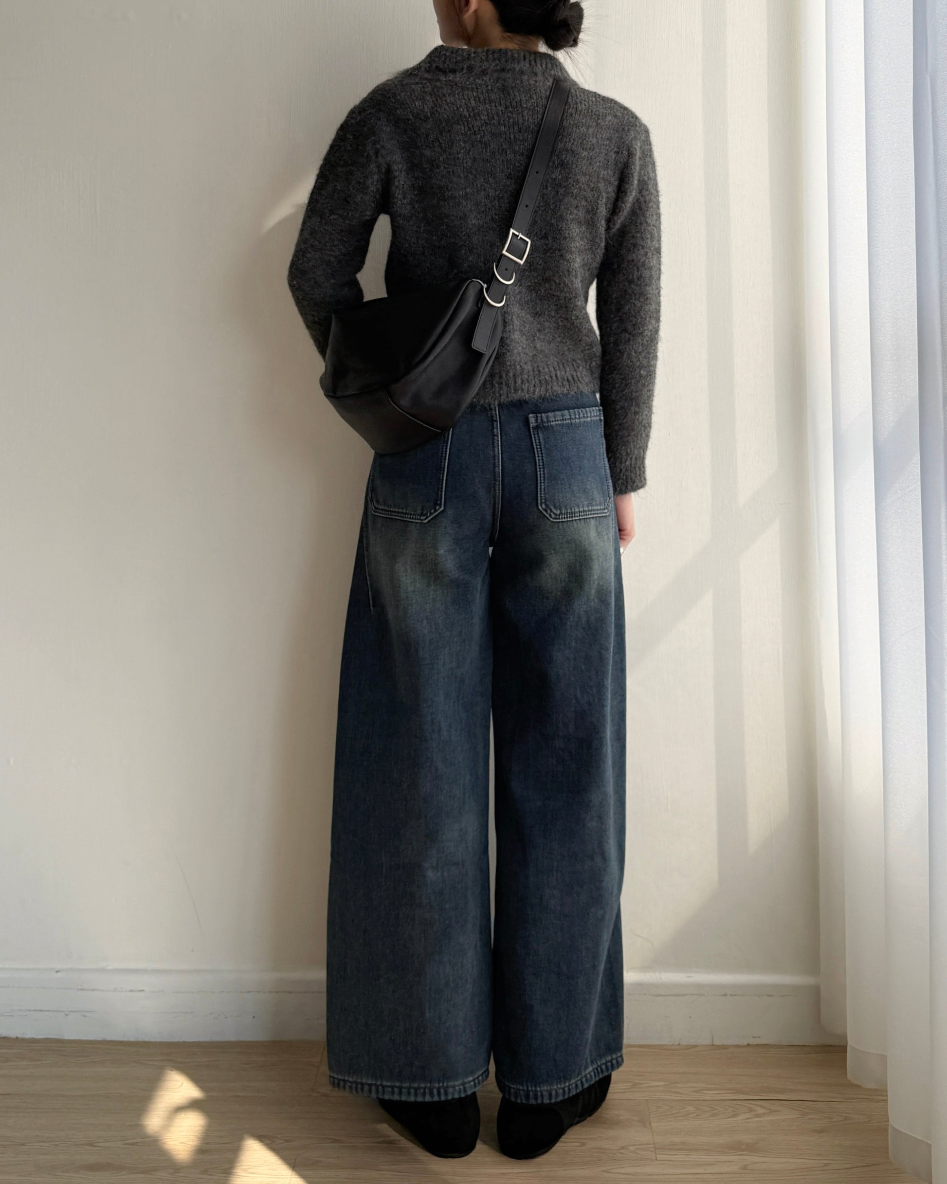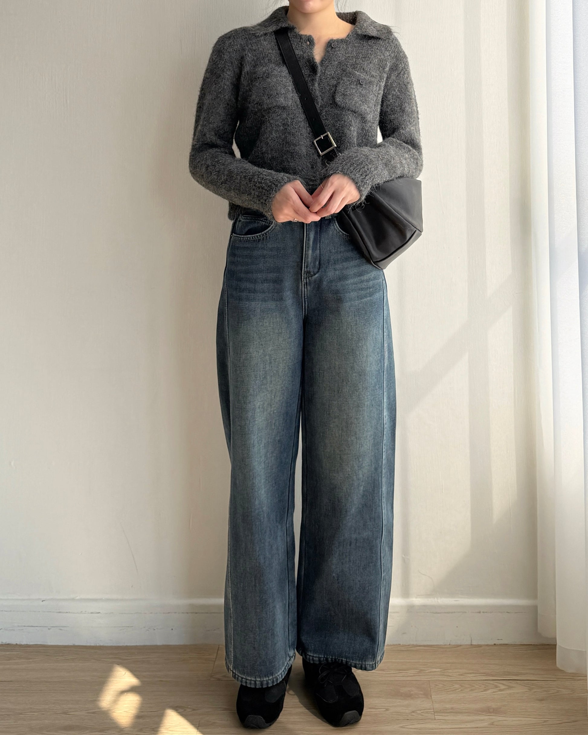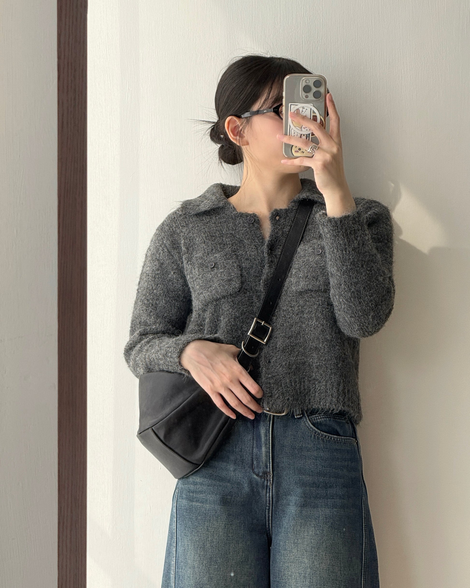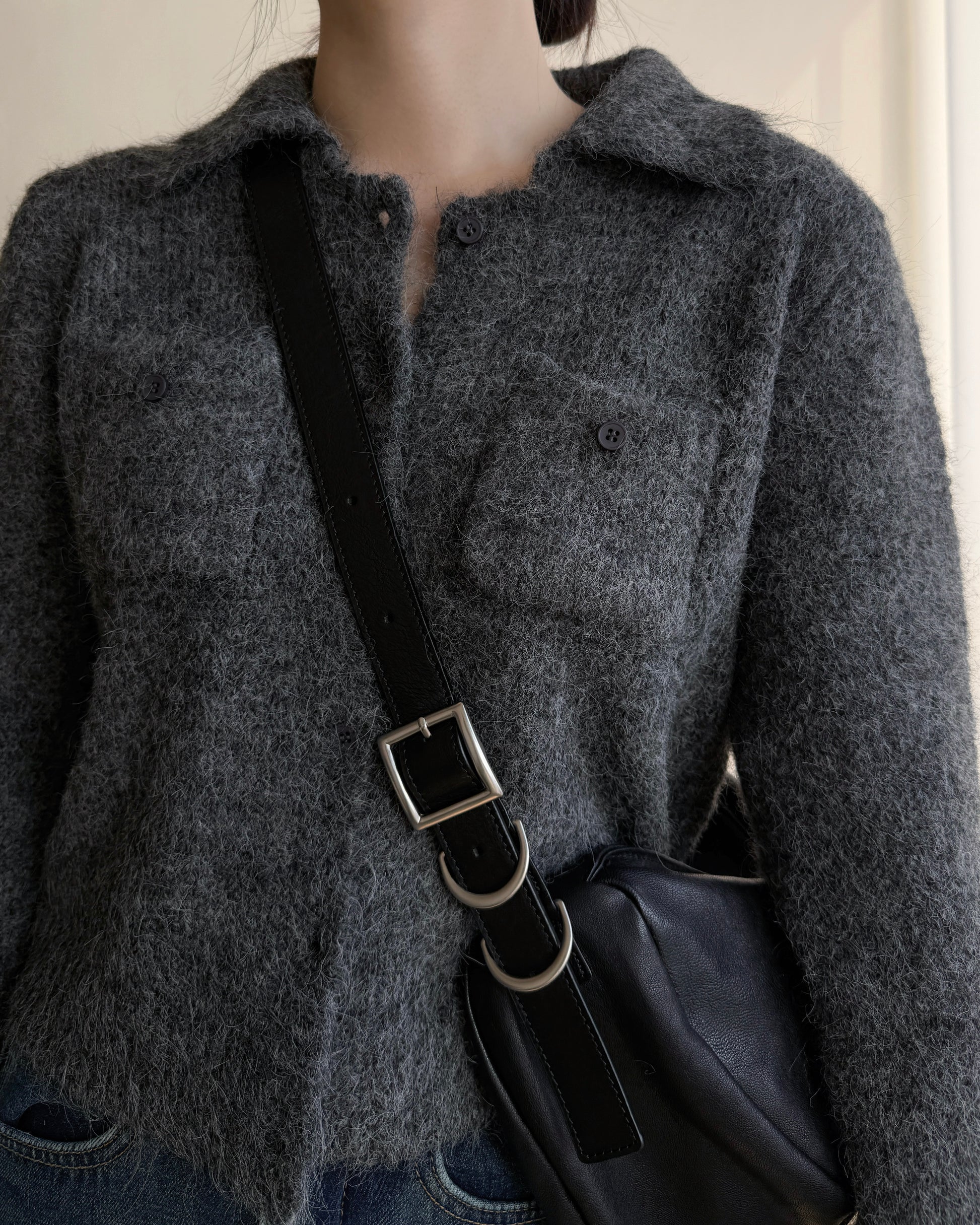 TP561 修身口袋針織上衣 - Ivory | Charcoal