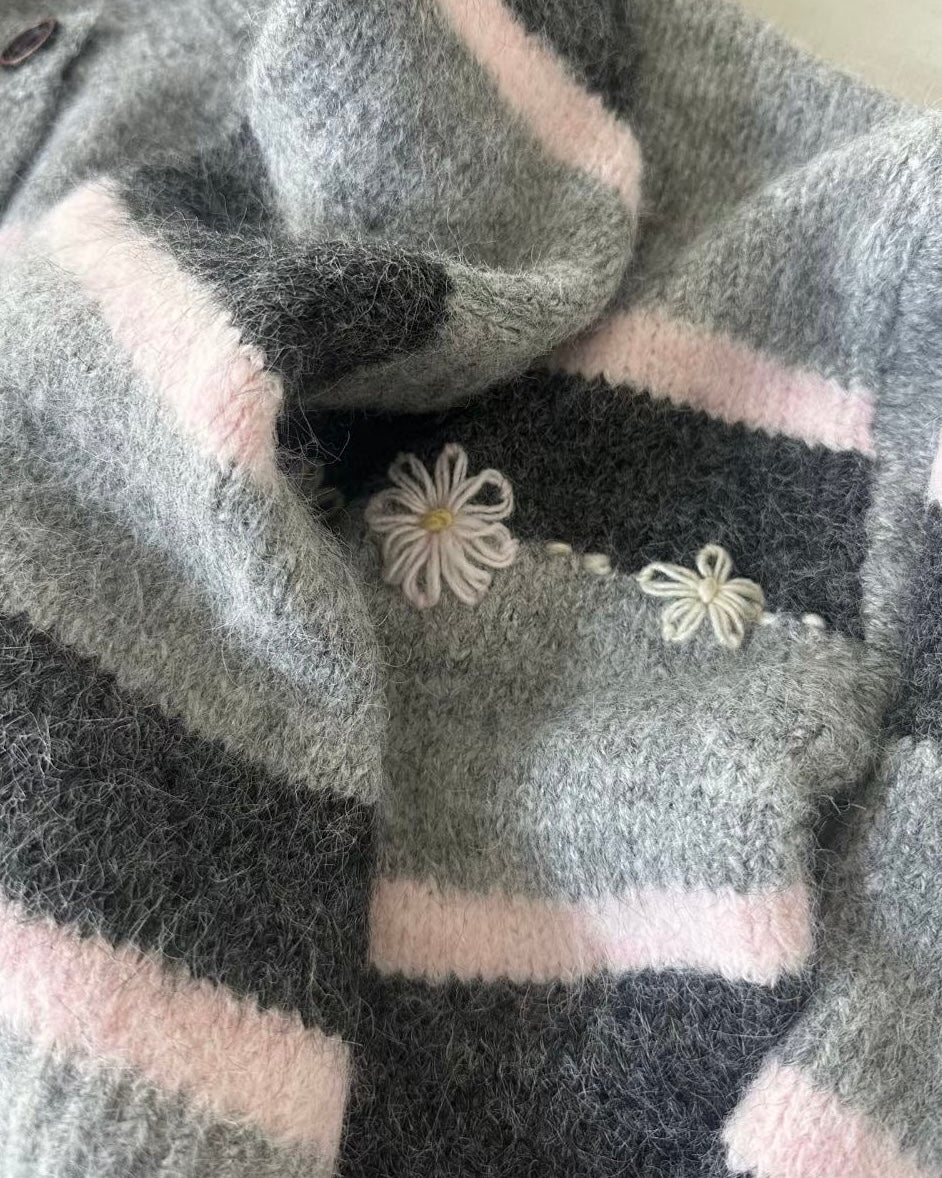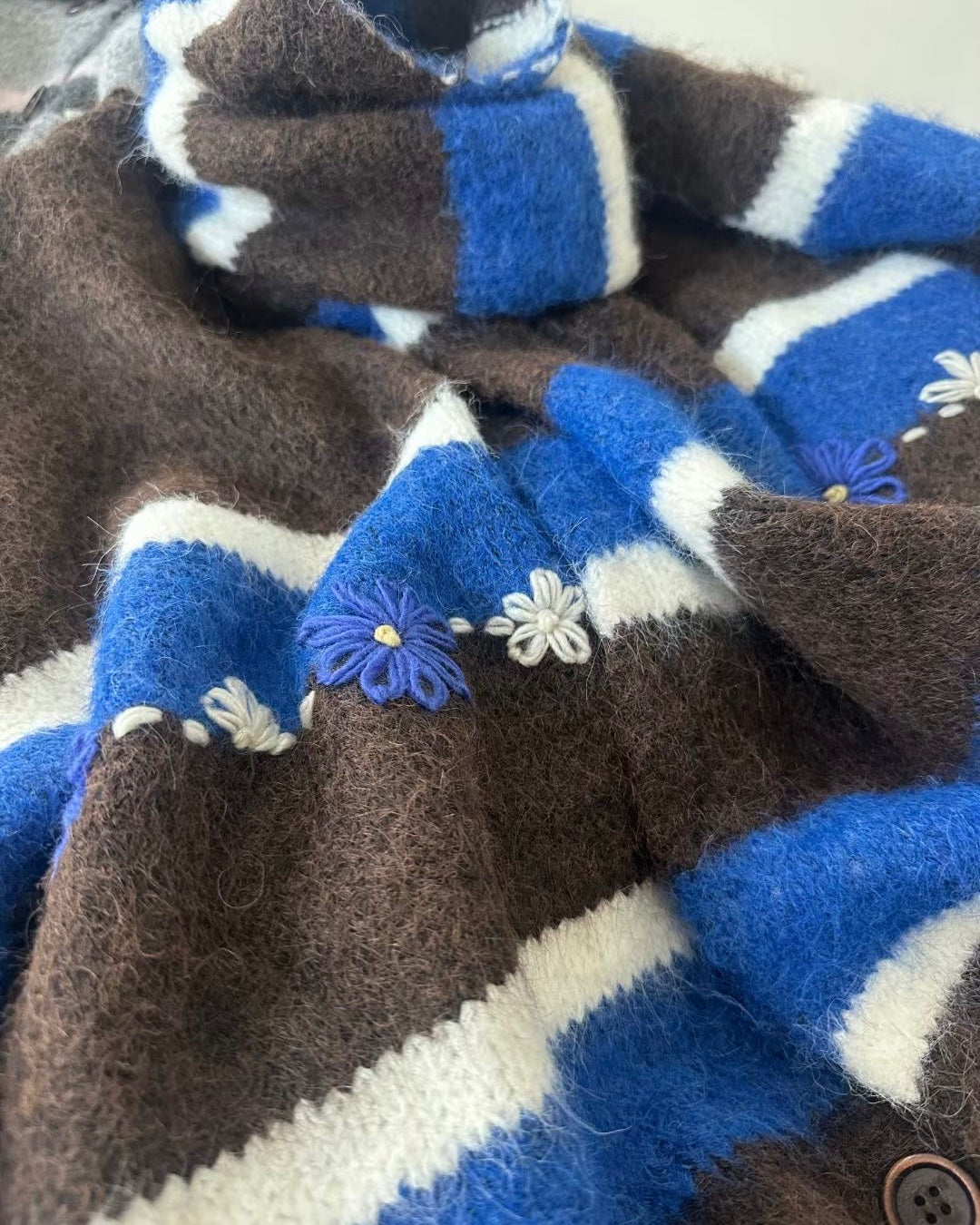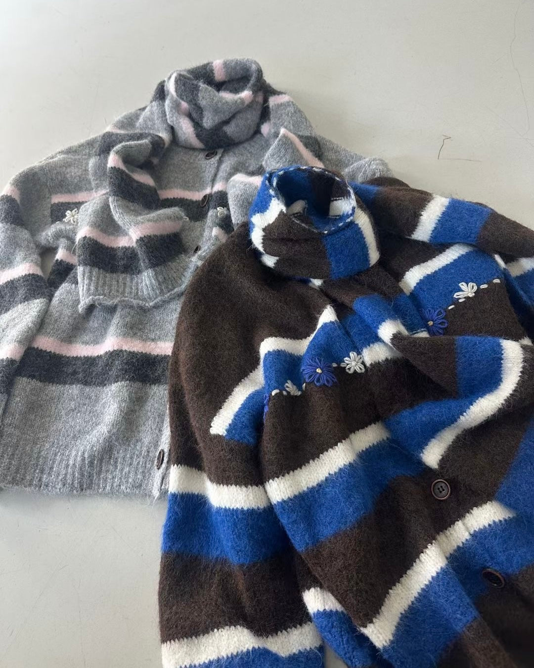 Preorder 🌸 CD054 Floral Muffler Knit - Gray | Brown