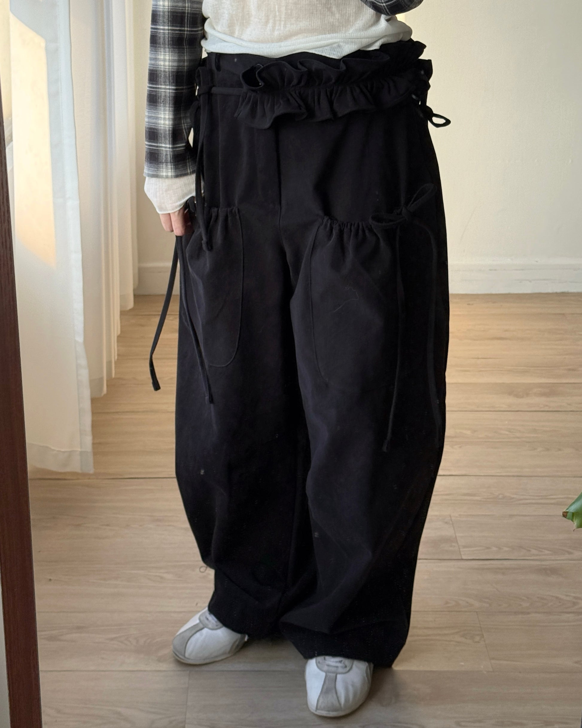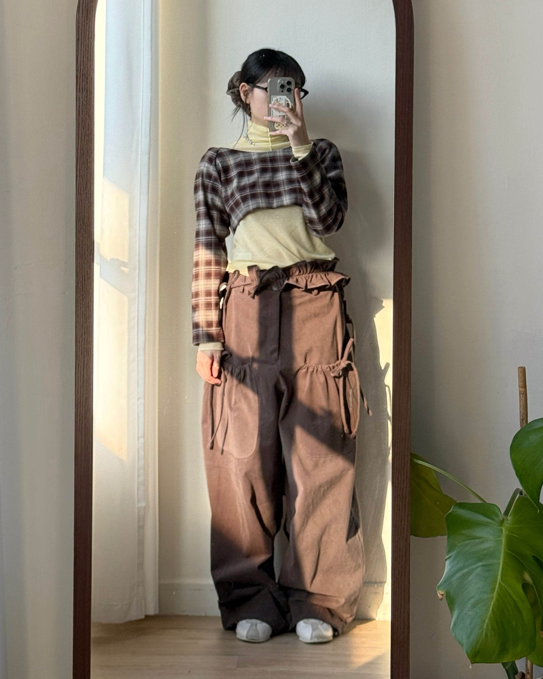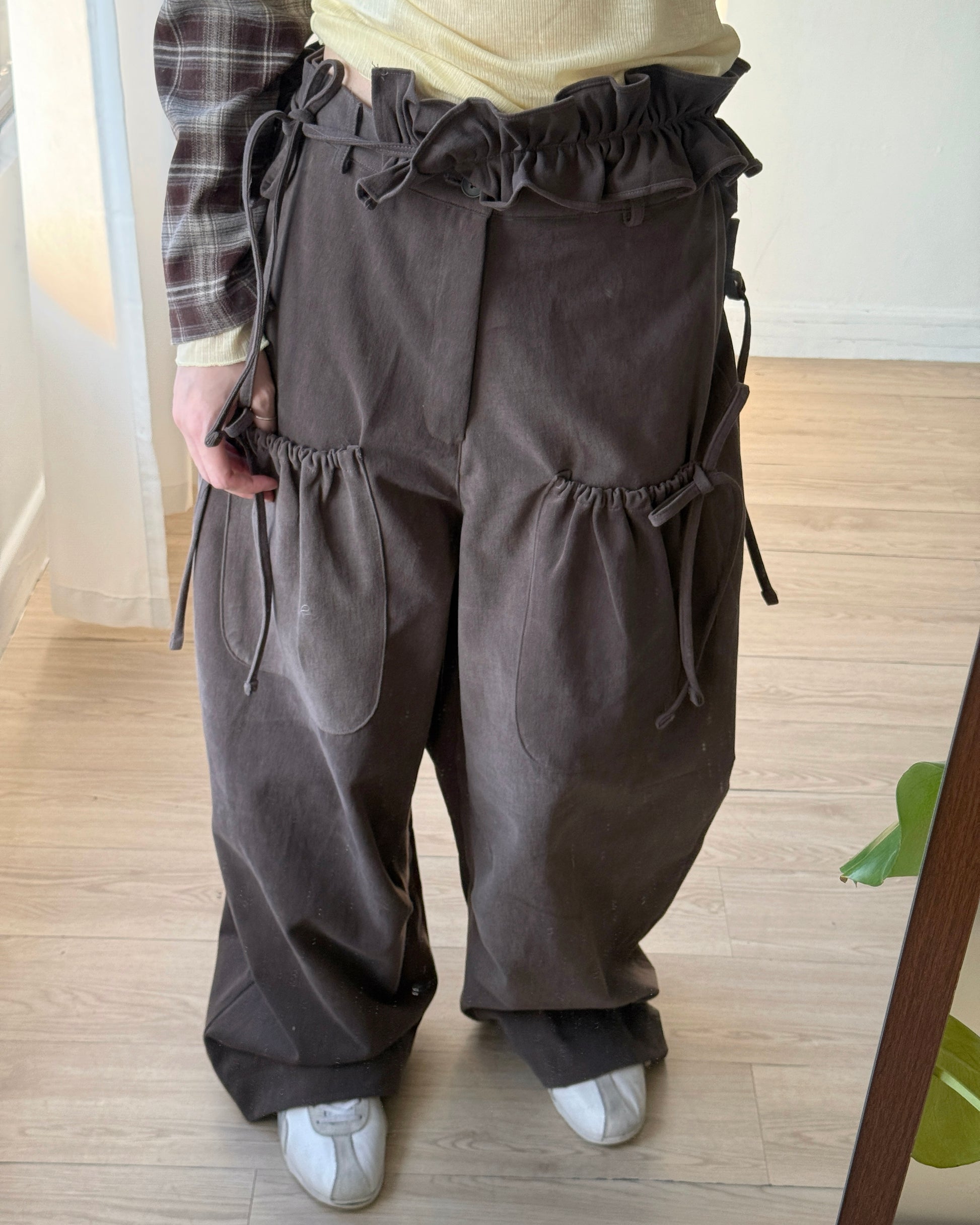 PT077 蝴蝶皺褶休閑褲(連腰帶) - Brown | Black