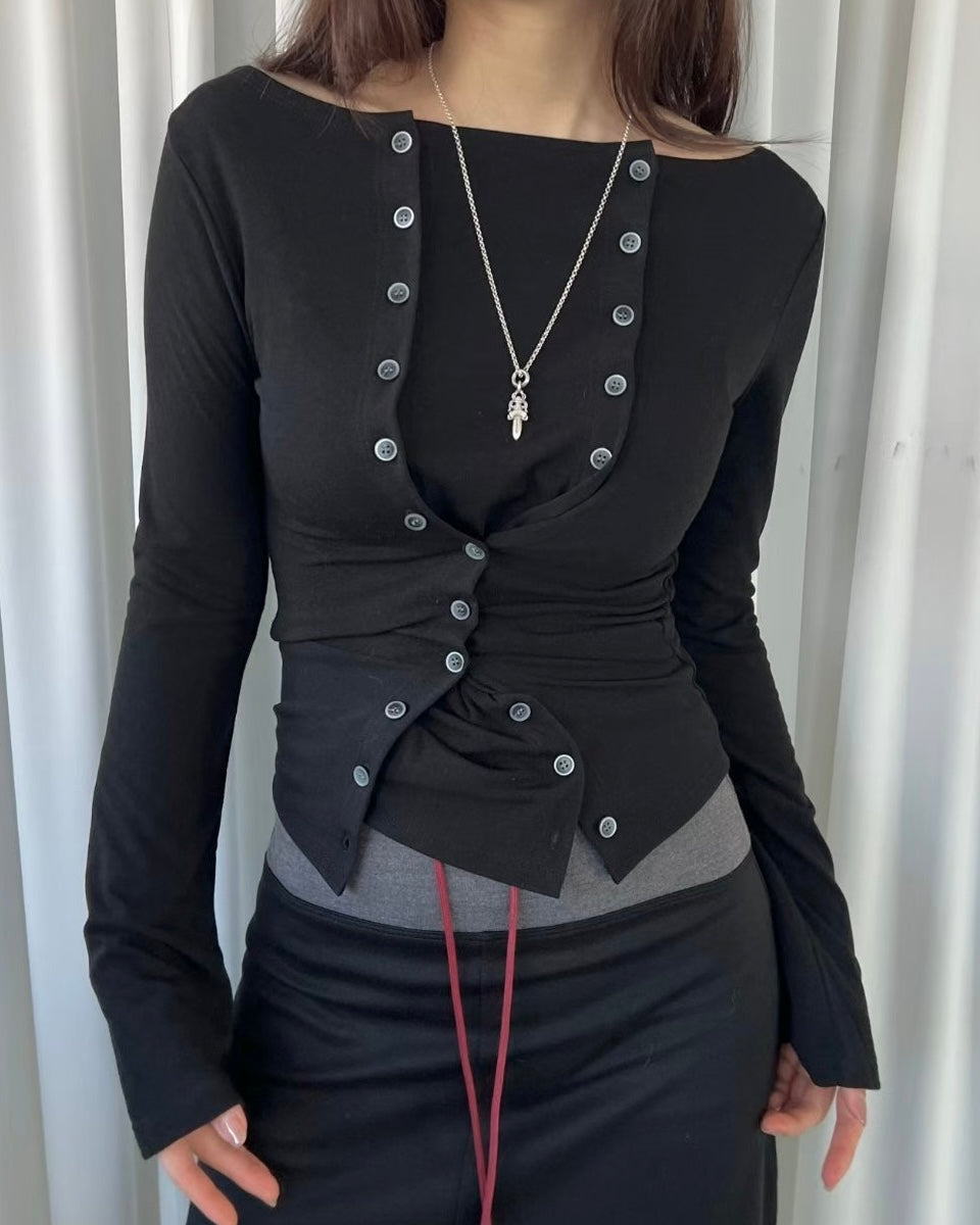 TP571 Button Top - Black | White