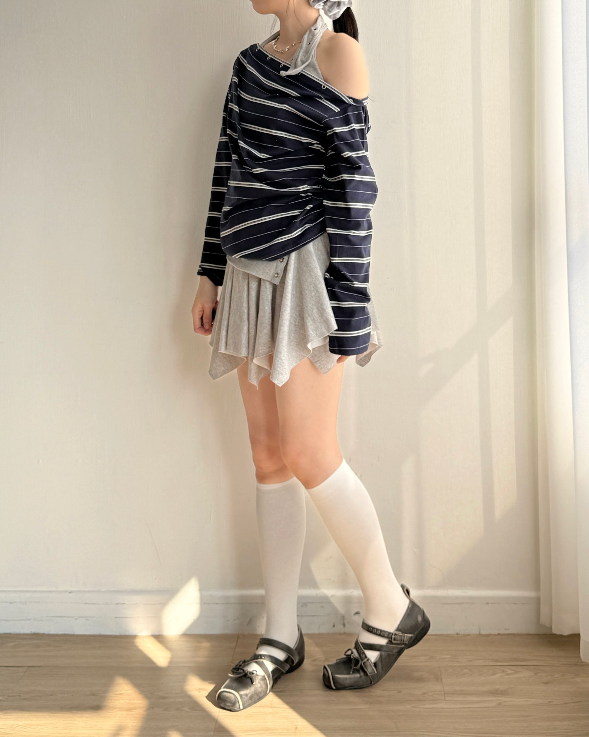 TP572 Striped Snap Top - Gray | Navy