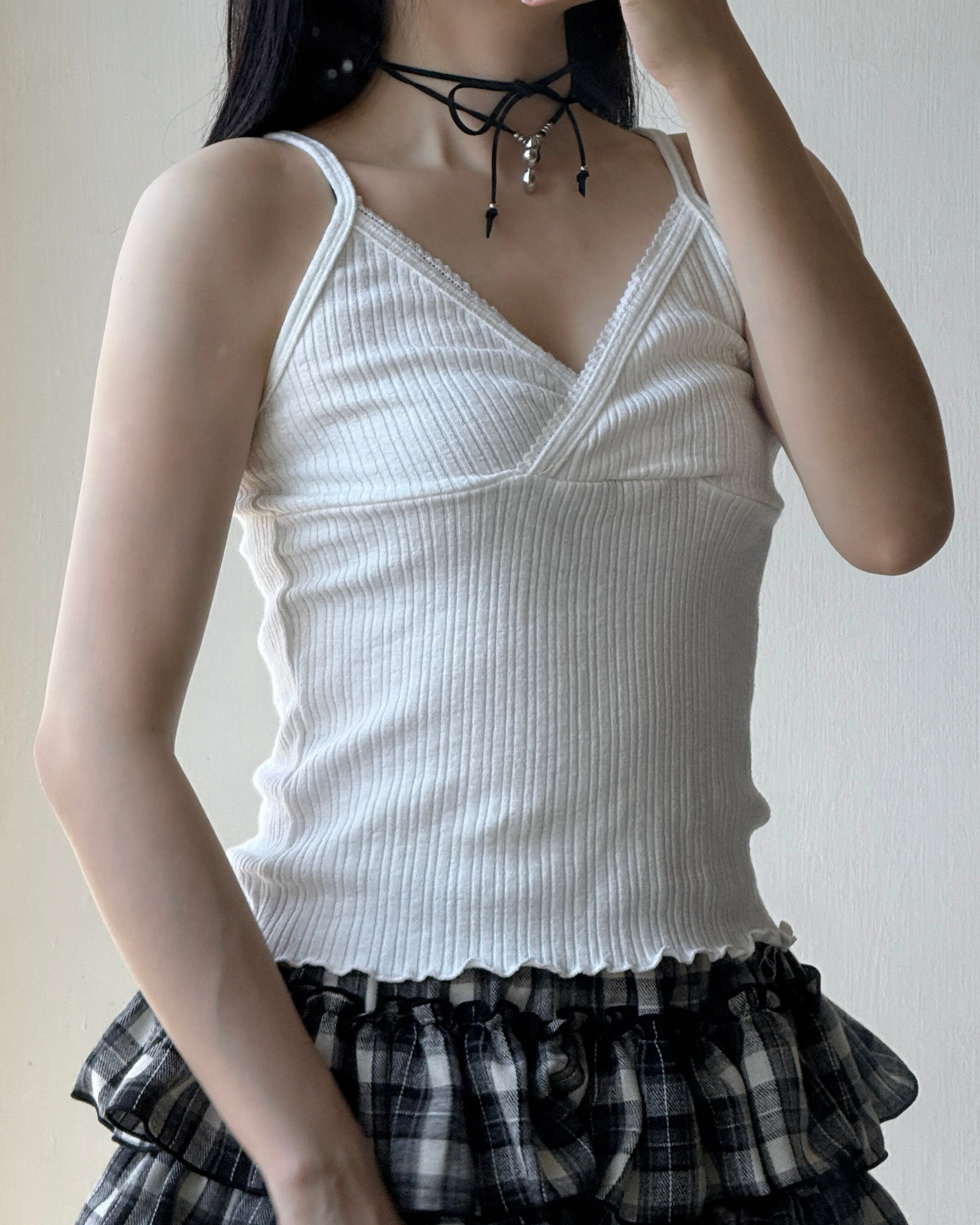 VT261 Lace Ribbed Vest - Ivory | Dark Gray | Khaki