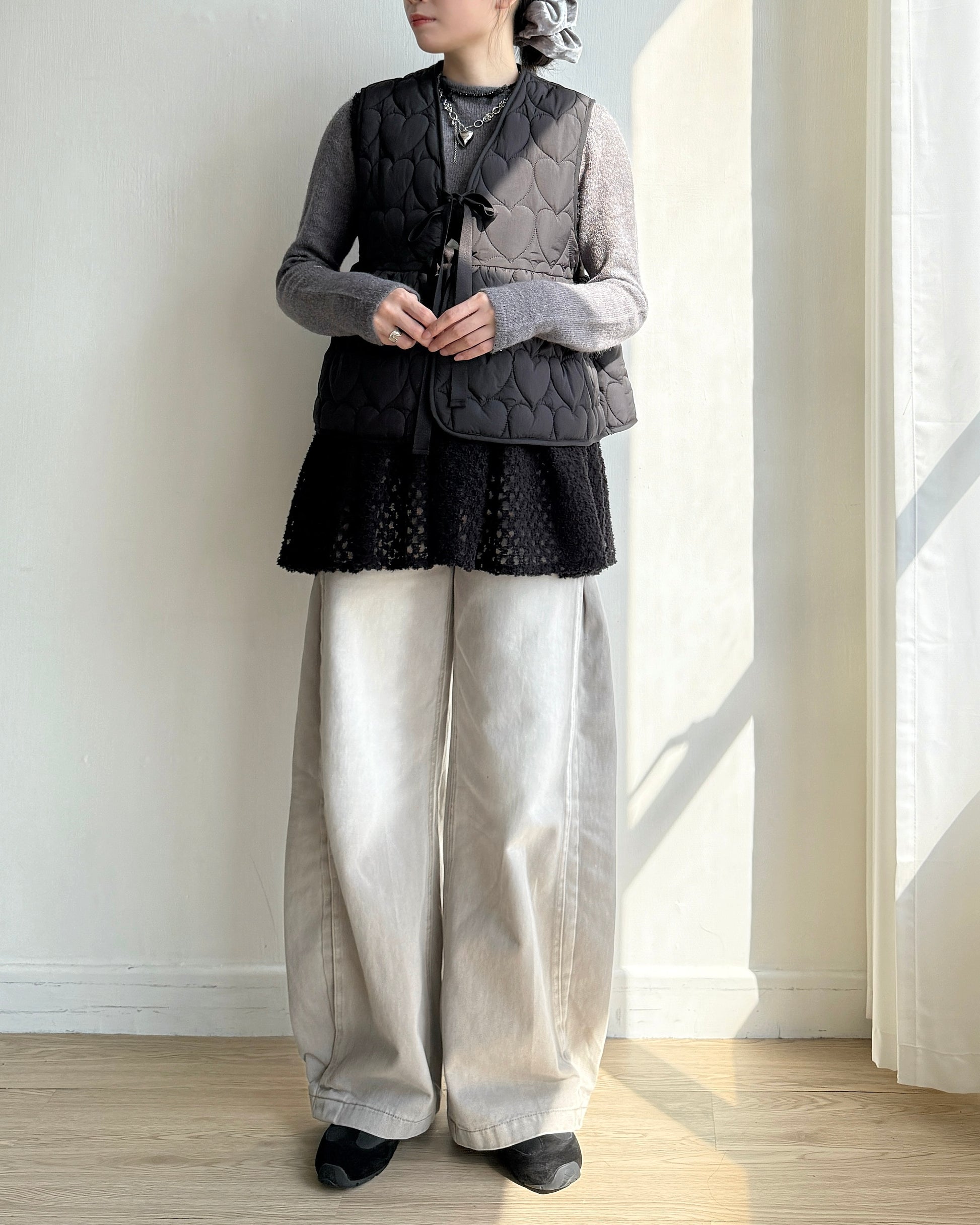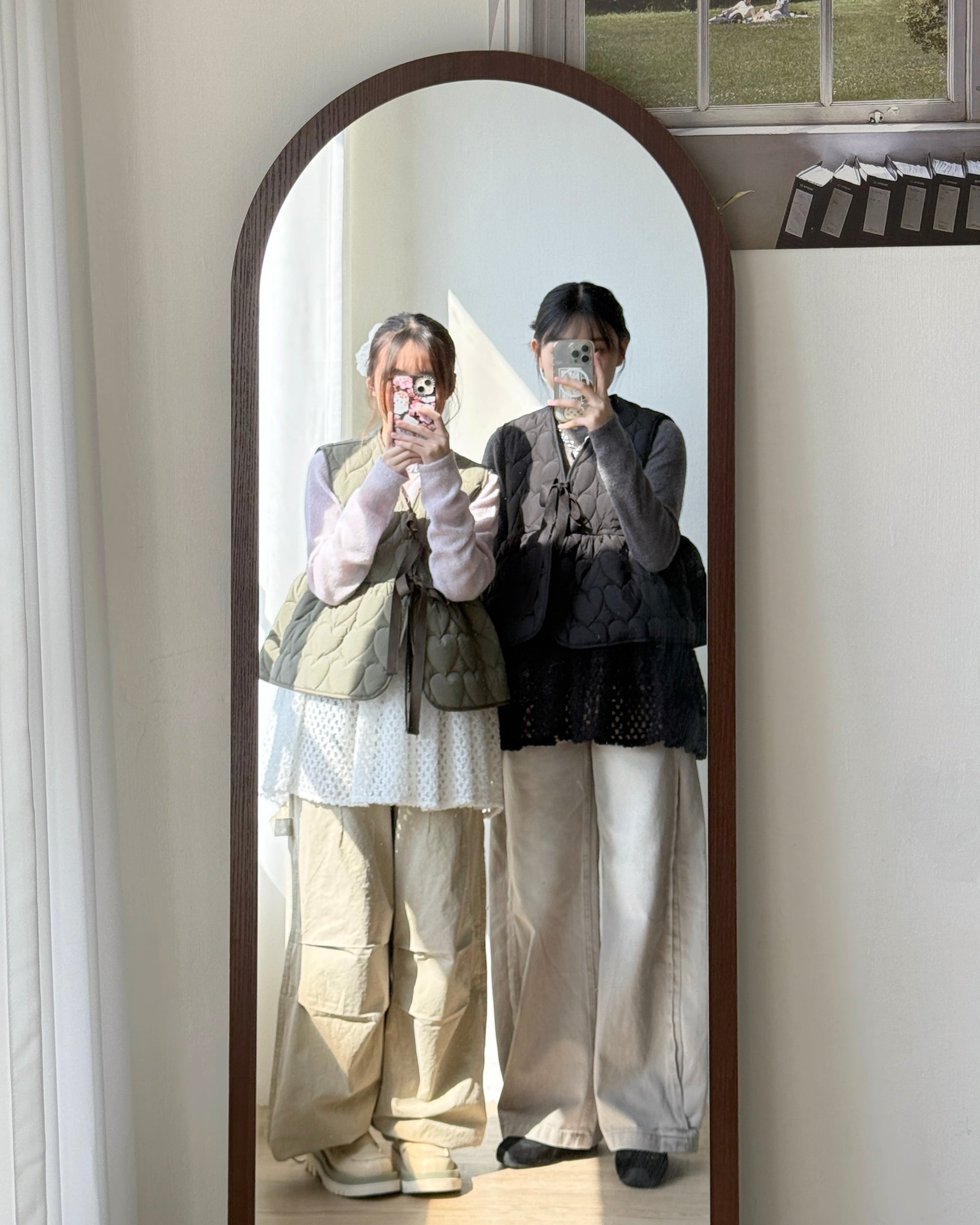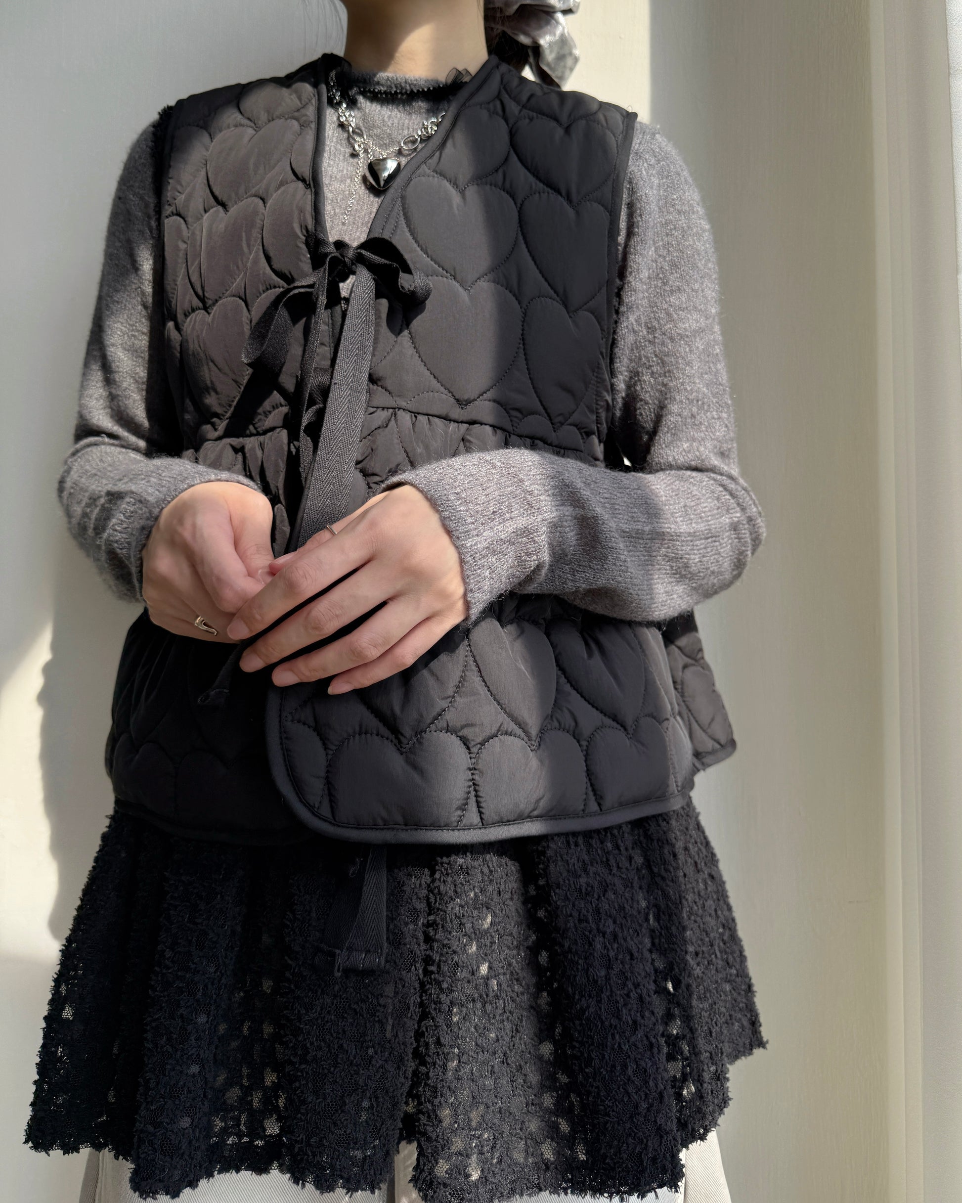 🐏早鳥限定優惠 VT267 Heart Quilted Vest - Khaki | Black