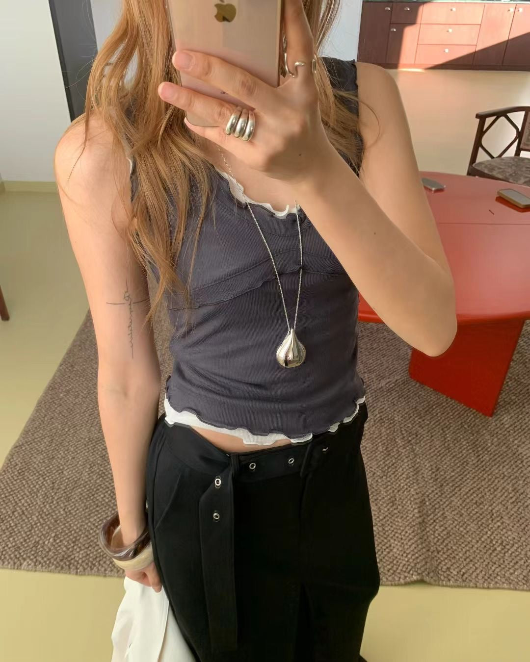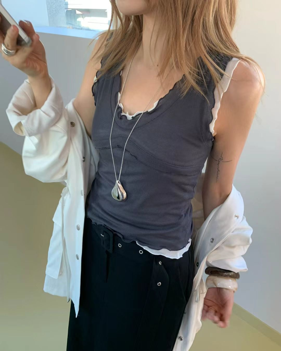 VT277 Ruffle Vest - White | Yellow | Brown | Purple | Charcoal