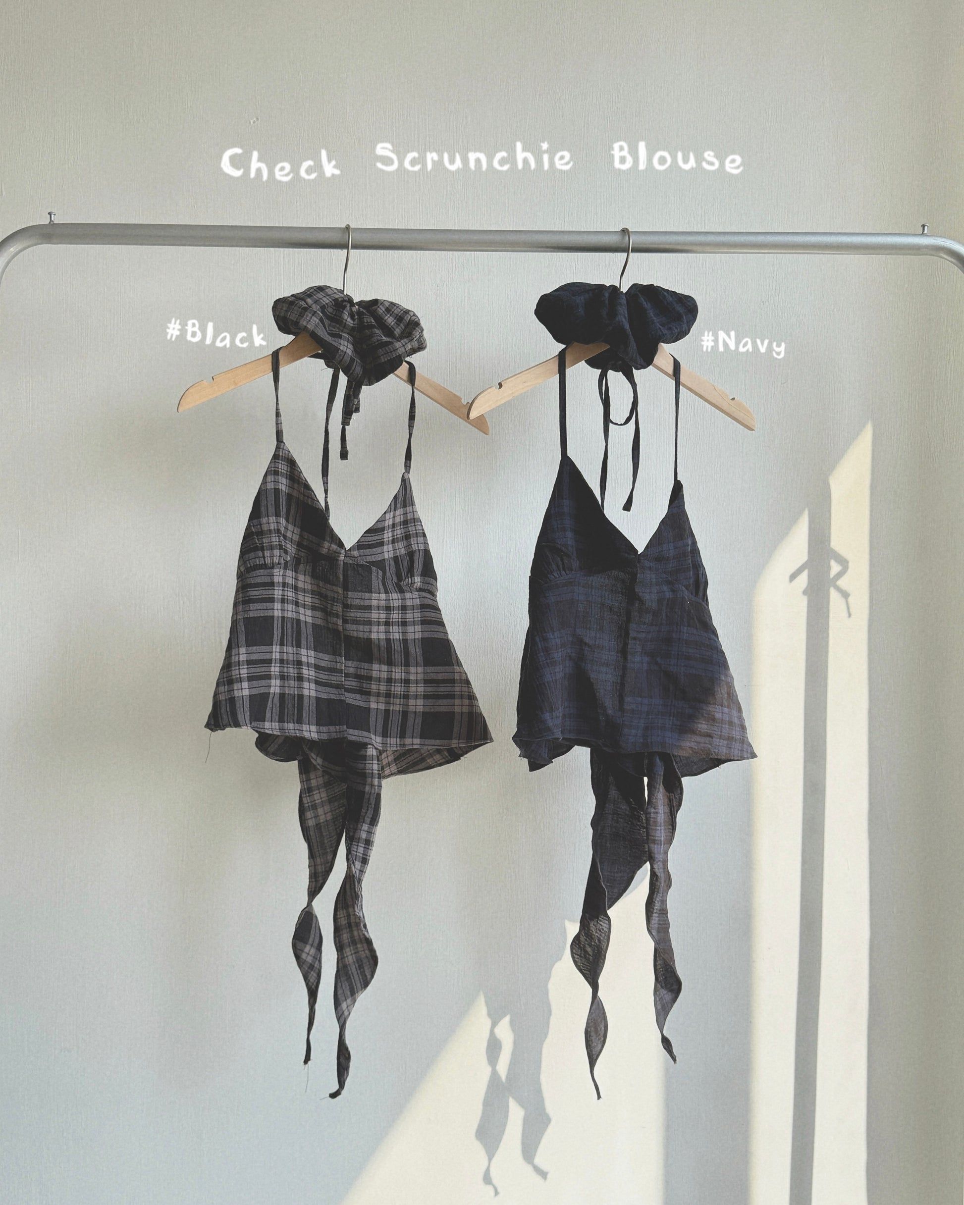 VT279 Check Scrunchie Blouse - Navy | Black