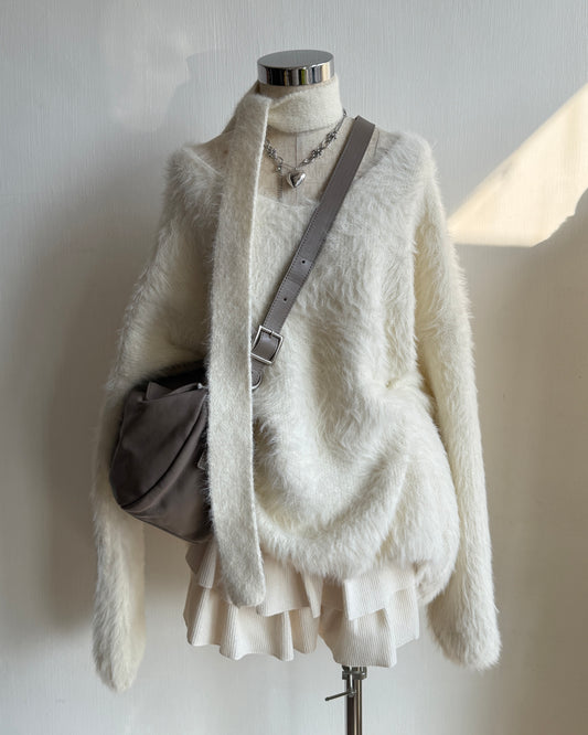 TP566 Fur V-Neck Knit - Pink | White | Brown